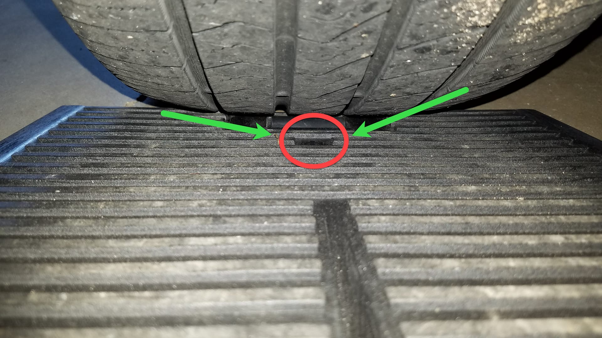We’ve got this dot on the front on both ramps for centering your tire on the ramps.